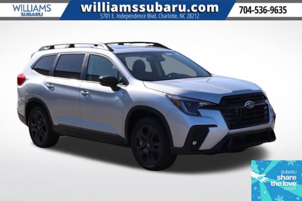 Nicely equipped with these features and benefits:, 3rd row seats: bench, 4-Wheel Disc Brakes, 6 Speakers, ABS brakes, Air Conditioning, All-Weather Floor Liners, Alloy wheels, AM/FM radio: SiriusXM with 360L, Apple CarPlay & Android Auto, Auto High-beam Headlights, Auto-Dimming Exterior Mirror w/Approach Light, Auto-dimming Rear-View mirror, Automatic temperature control, Brake assist, Bumpers: body-color, Cargo Tray, Compass, Delay-off headlights, Driver door bin, Driver vanity mirror, Dual front impact airbags, Dual front side impact airbags, Electronic Stability Control, Emergency communication system: MySubaru Safety (3-year free trial), Exterior Parking Camera Rear, Four wheel independent suspension, Front anti-roll bar, Front Bucket Seats, Front Center Armrest, Front dual zone A/C, Front fog lights, Front reading lights, Fully automatic headlights, Garage door transmitter: HomeLink, Heated door mirrors, Heated Front Bucket Seats, Heated front seats, Heated steering wheel, Illuminated entry, Knee airbag, Leather Shift Knob, Leather steering wheel, LED Cargo Area Lighting, LED Upgrade, Low tire pressure warning, Occupant sensing airbag, Outside temperature display, Overhead airbag, Overhead console, Panic alarm, Passenger door bin, Passenger vanity mirror, Power door mirrors, Power driver seat, Power Liftgate, Power moonroof, Power steering, Power windows, Radio data system, Radio: Subaru 11.6" Multimedia Plus System, Rear air conditioning, Rear anti-roll bar, Rear reading lights, Rear window defroster, Rear window wiper, Reclining 3rd row seat, Remote keyless entry, Security system, Speed control, Speed-sensing steering, Split folding rear seat, Spoiler, Standard Model, StarTex Upholstery, Steering wheel mounted audio controls, Tachometer, Telescoping steering wheel, Tilt steering wheel, Traction control, Trip computer, Turn signal indicator mirrors, Variably intermittent wipers, Wheels: 20" x 7.5 J Aluminum Alloy w/Black Finish, Backup Camera/ Rear View Camera, Radar Cruise Control/ Adaptive Cruise Control, Navigation/ GPS, Blind Spot Monitors, Bluetooth, Apple Carplay/ Android Auto, Collision Intervention, Collision Warning Alert, USB Port.